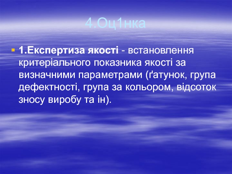 1.Експертиза якості - встановлення критеріального показника якості за визначними параметрами