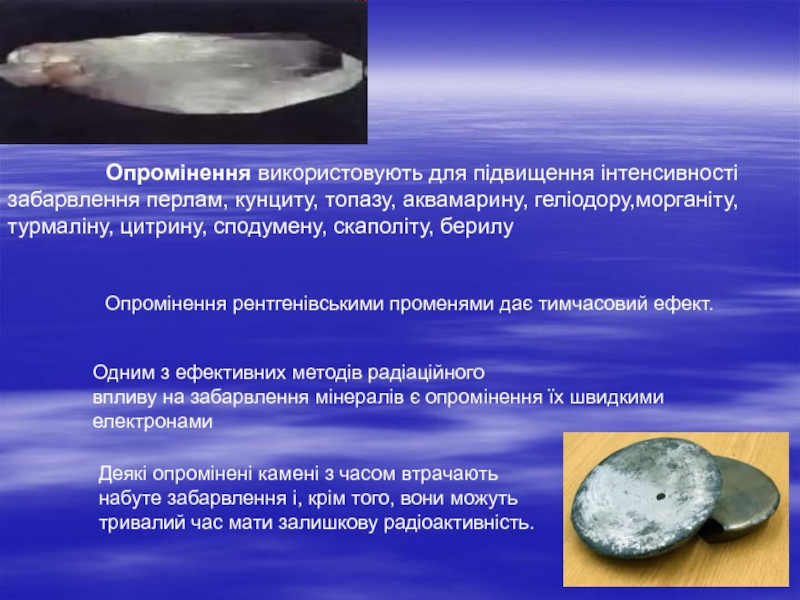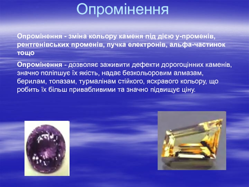 Слайд 9Зміна кольору каменя відбувається при одночасному впливу у-променів і