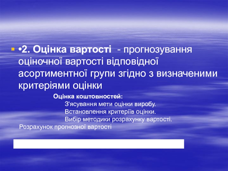 Слайд 58•2. Оцінка вартості - прогнозування оціночної вартості відповідної асортиментної групи