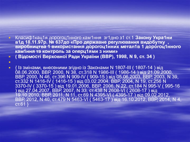 Слайд 61Класиф1кац1я дорогоц1нного кам1ння зг1дно з1 ст.1 Закону Укра1ни в1д 18.11.97р.