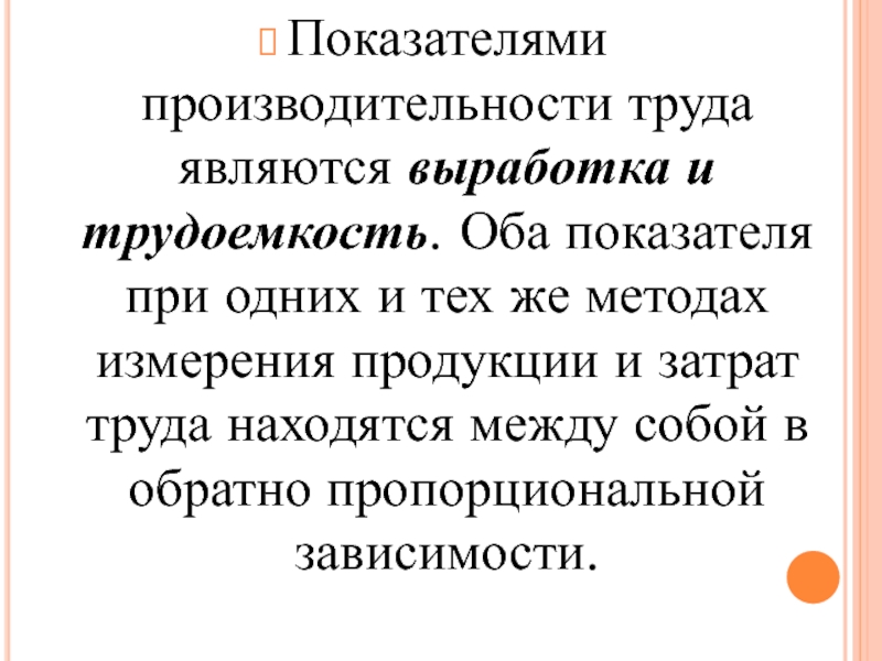 Слайд 50Показателями производительности труда являются выработка и трудоемкость. Оба показателя при одних и