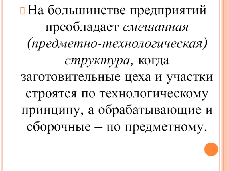 Слайд 14На большинстве предприятий преобладает смешанная (предметно-технологическая) структура, когда заготовительные цеха и участки