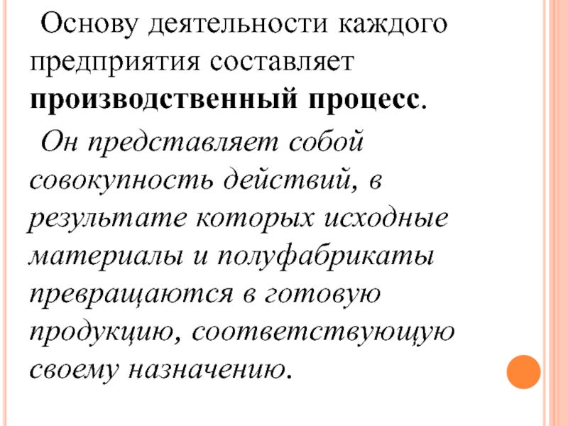 Слайд 18 Основу деятельности каждого предприятия составляет производственный процесс.