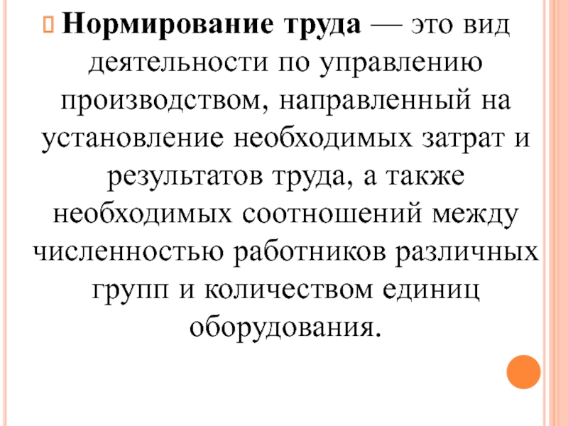 Слайд 42Нормирование труда — это вид деятельности по управлению производством, направленный на
