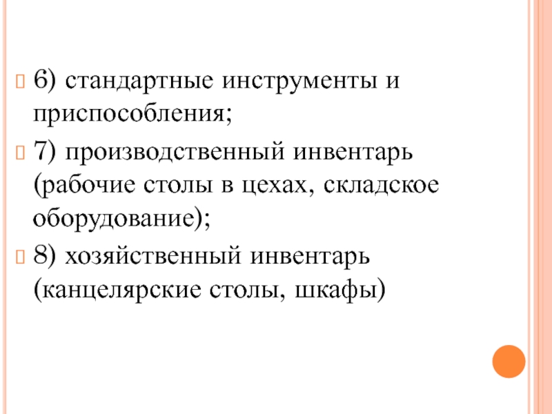 7) производственный инвентарь(рабочие столы в цехах,