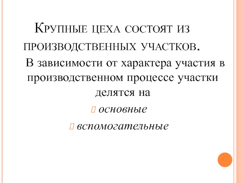 Крупные цеха состоят из производственных участков.