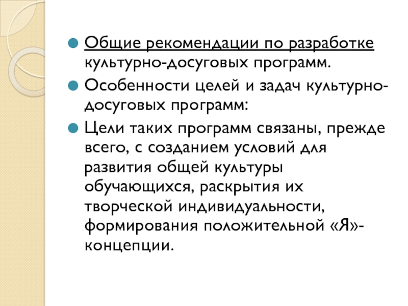 Слайд 13Общие рекомендации по разработке культурно-досуговых программ.