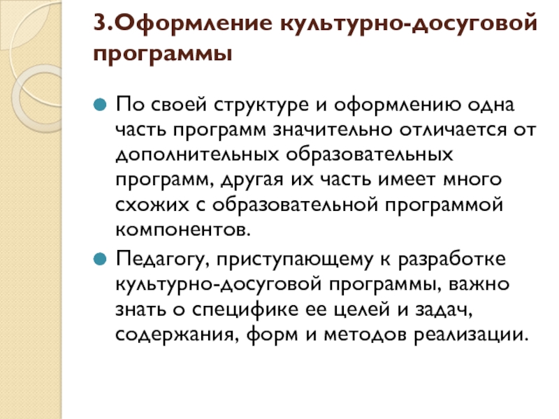 досуга, особенности культурно -досуговых программ.
