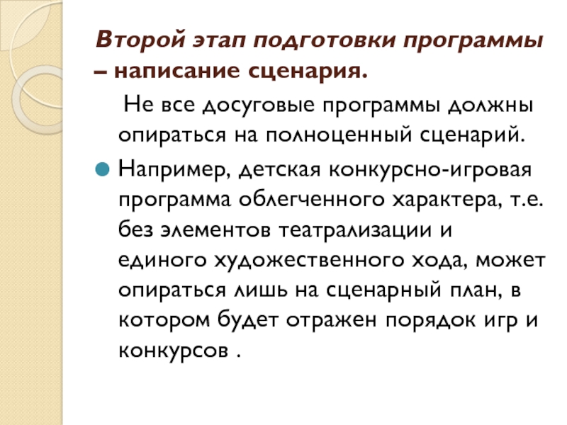 Слайд 10Сценарий культурно-досуговой программы – это подробная текстовая разработка, включающая как
