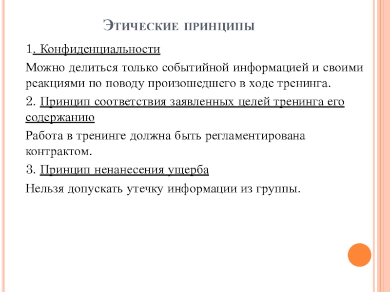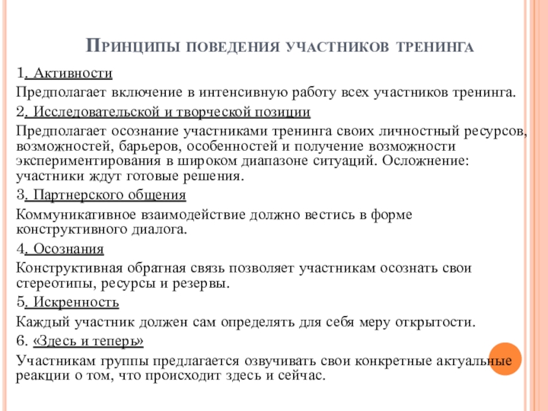 Слайд 21. Основные принципы тренингового взаимодействия.