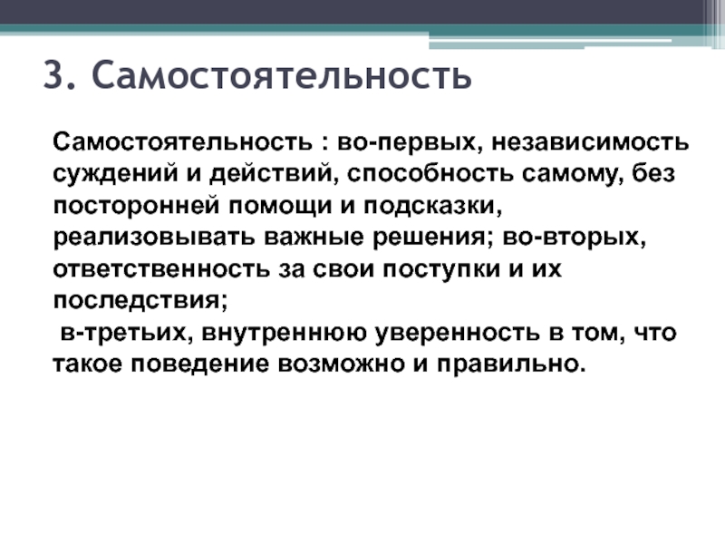Самостоятельность : во-первых, независимость суждений и действий, способность самому,