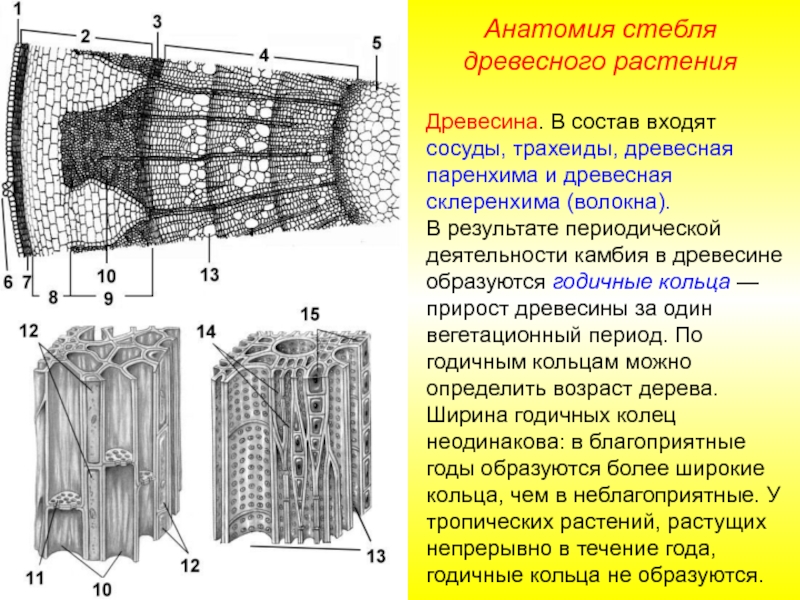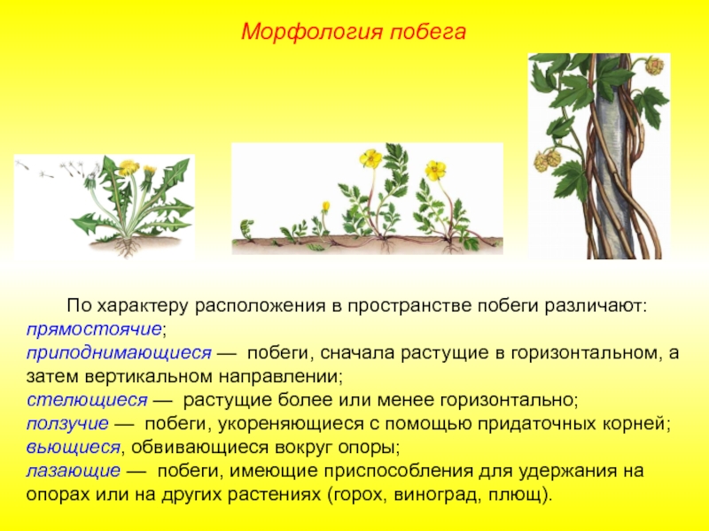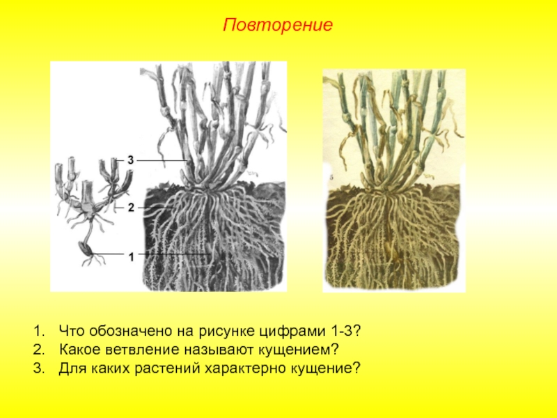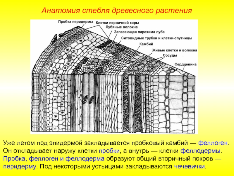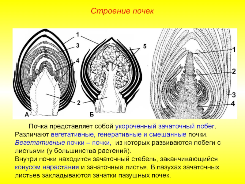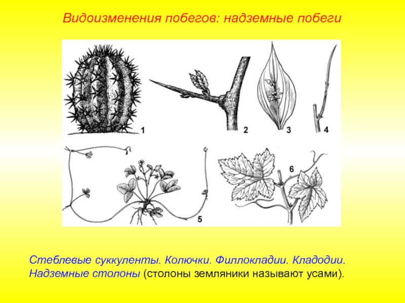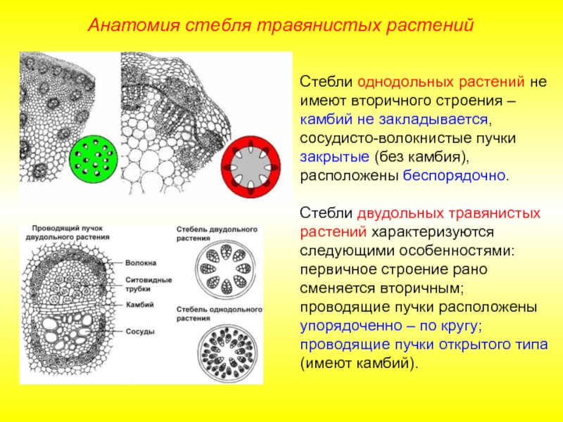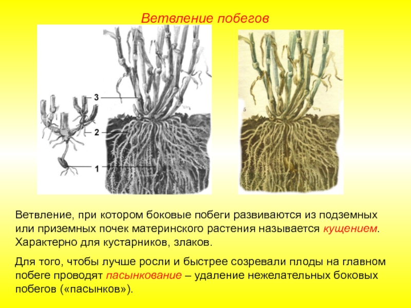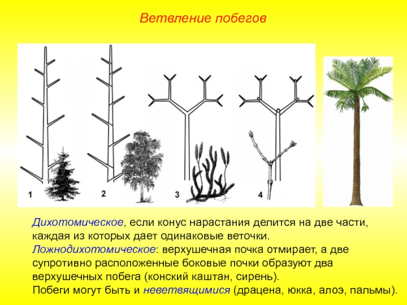 Узлы обнаруживаются по листовым рубцам и остаткам сухих листьев или по живым чешуевидным листьям. Из стеблевых узлов развиваются придаточные корни. Запасные питательные вещества откладываются в стеблевой части побега.