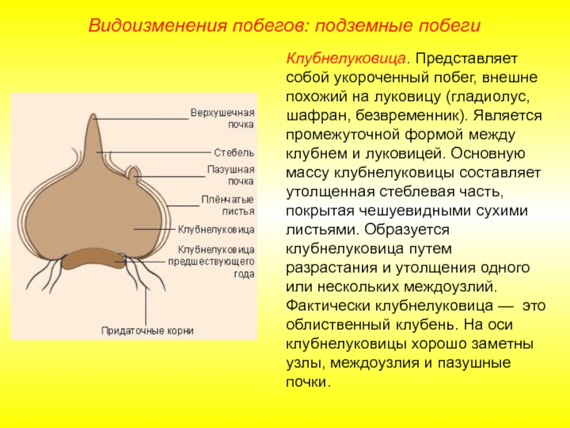 Клубень — видоизмененный побег, состоящий из одного или нескольких метамеров, стебель которого сильно утолщен. Выполняет запасающую функцию, может быть органом возобновления многолетних растений, часто служит для вегетативного размножения.