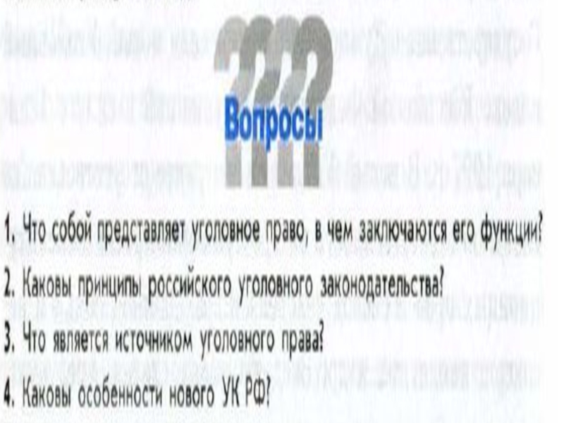 УГОЛОВНОЕ ПРАВОотрасль права, представляющая собой систему юридических норм, охраняющих наиболее важные в данном обществе ценности от посягательств