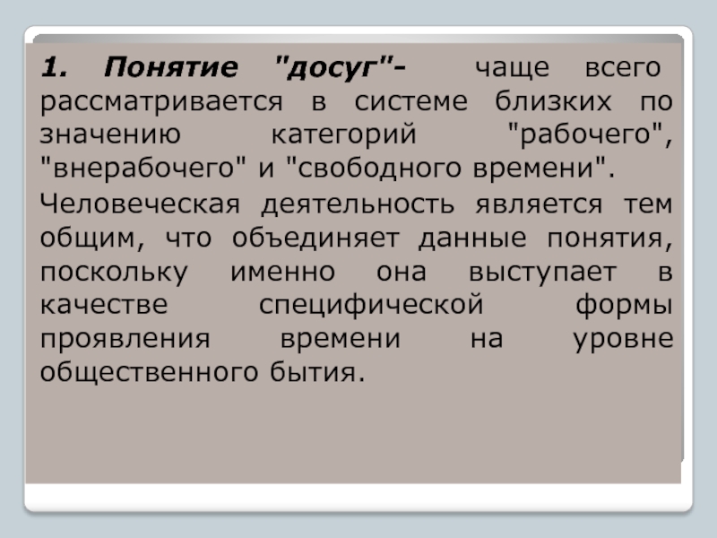 Слайд 21. Понятие "досуг"- чаще всего рассматривается в системе близких по