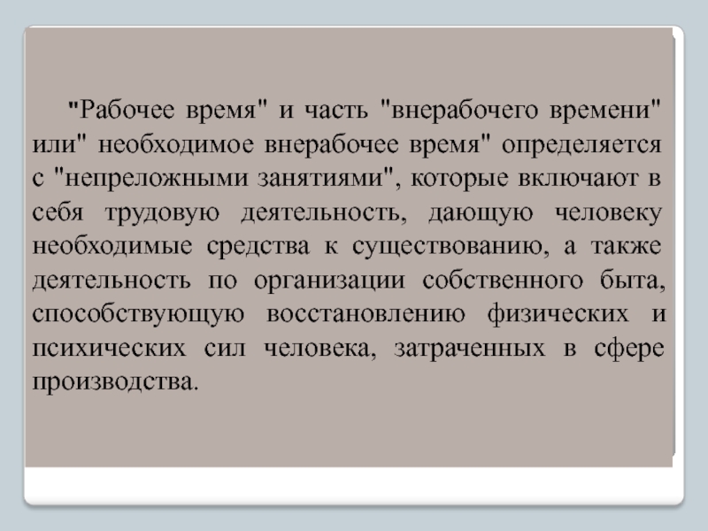 Слайд 3 "Рабочее время" и часть "внерабочего времени" или" необходимое внерабочее время"