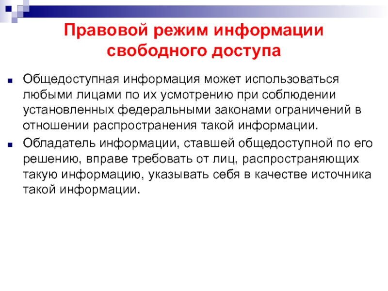Слайд 22Информация, доступ к которой не может быть ограничен