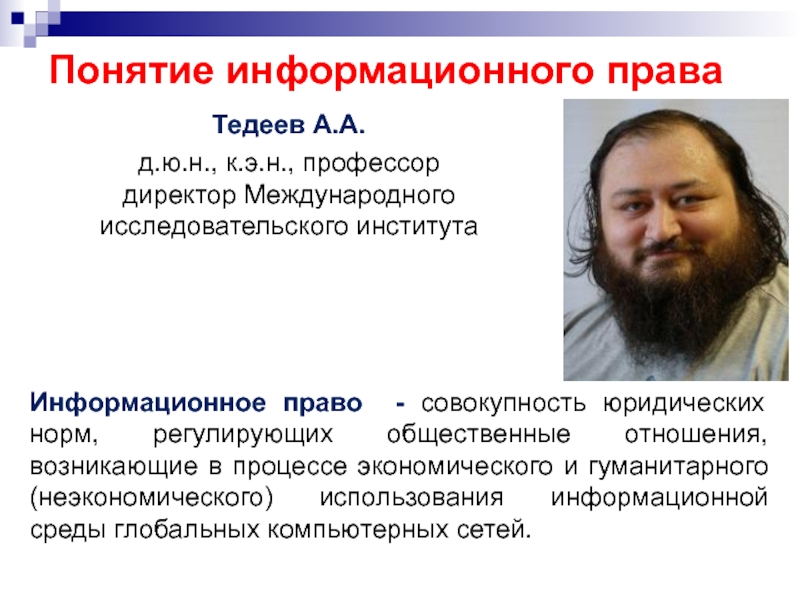 Слайд 1Тема: Понятие, предмет, методы и принципы информационного права