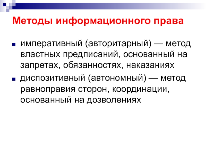 диспозитивный (автономный) — метод равноправия сторон, координации, основанный