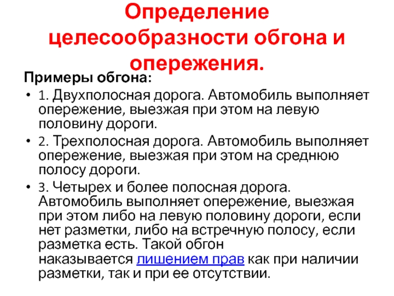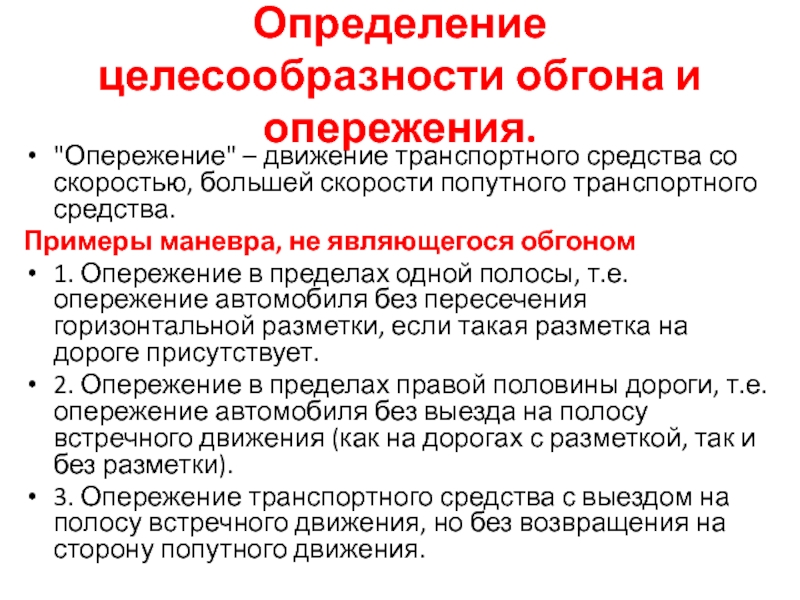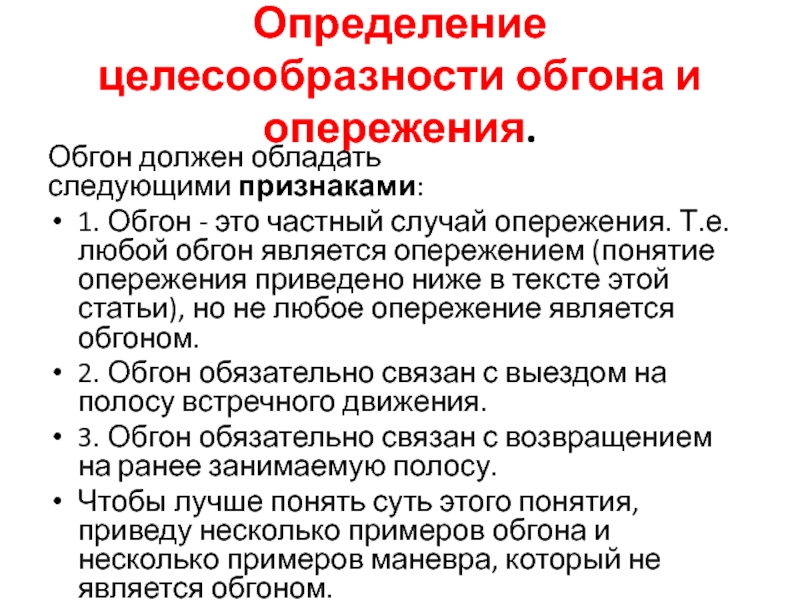 опережения приведено ниже в тексте этой статьи), но не любое опережение является обгоном.
