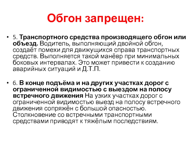 5. Транспортного средства производящего обгон или объезд. Водитель, выполняющий двойной