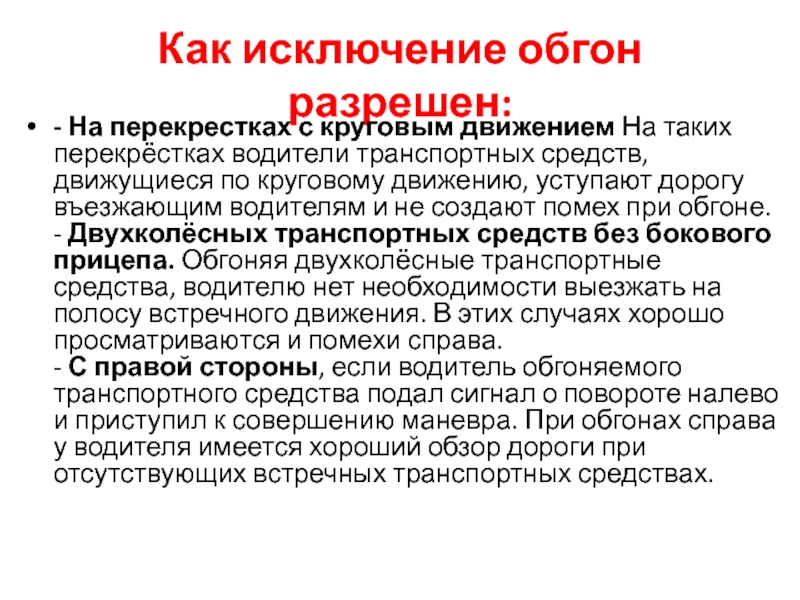 обгон, создаёт помехи для движущихся справа транспортных средств. Выполняется такой