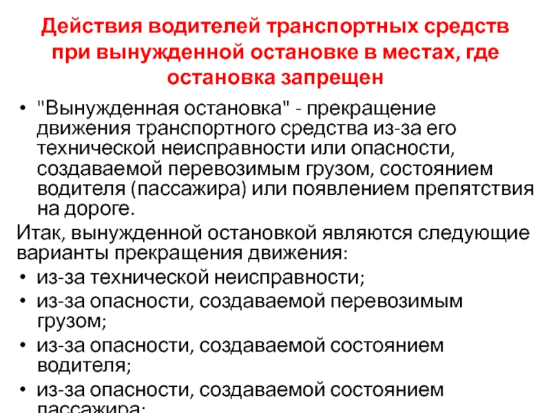 Итак, вынужденной остановкой являются следующие варианты прекращения движения: