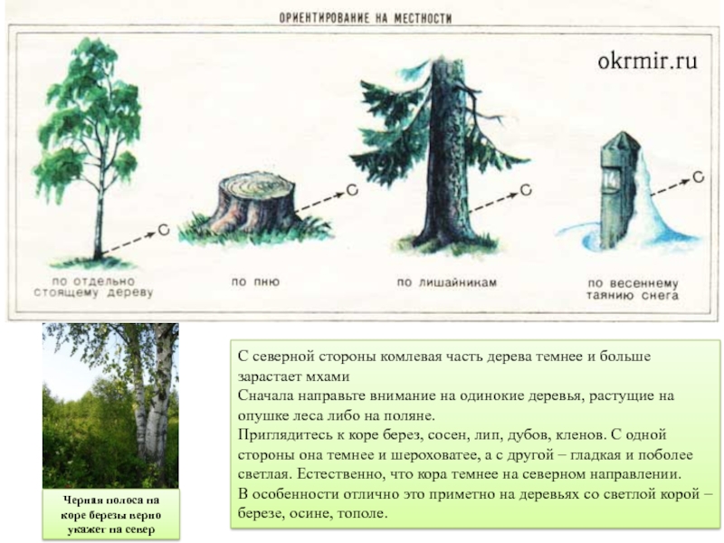 Самая короткая тень от местных предметов бывает в 13 часов, и направление тени от вертикально расположенных местных предметов в это время будет указывать на север.