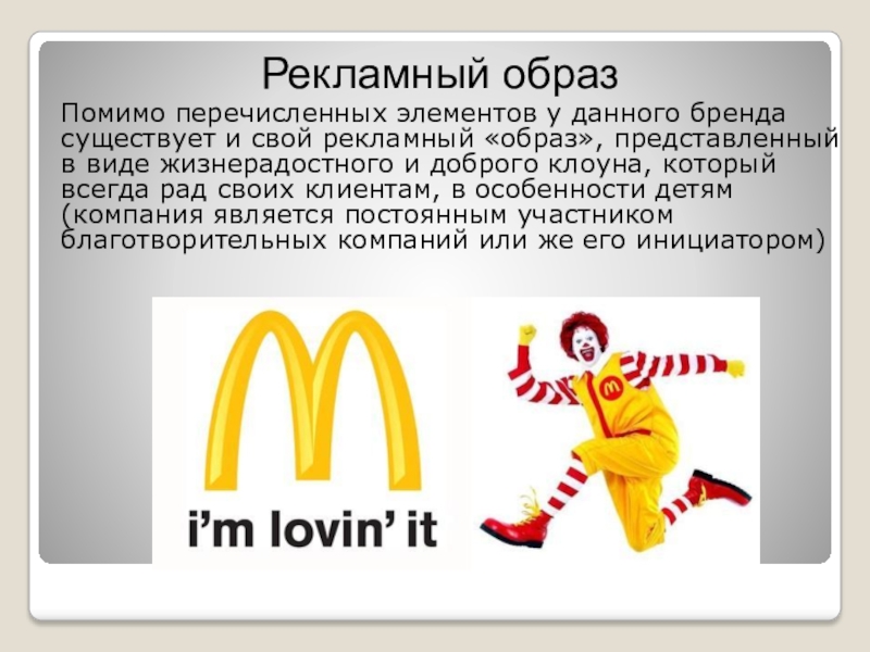 рекламный «образ», представленный в виде жизнерадостного и доброго клоуна, который