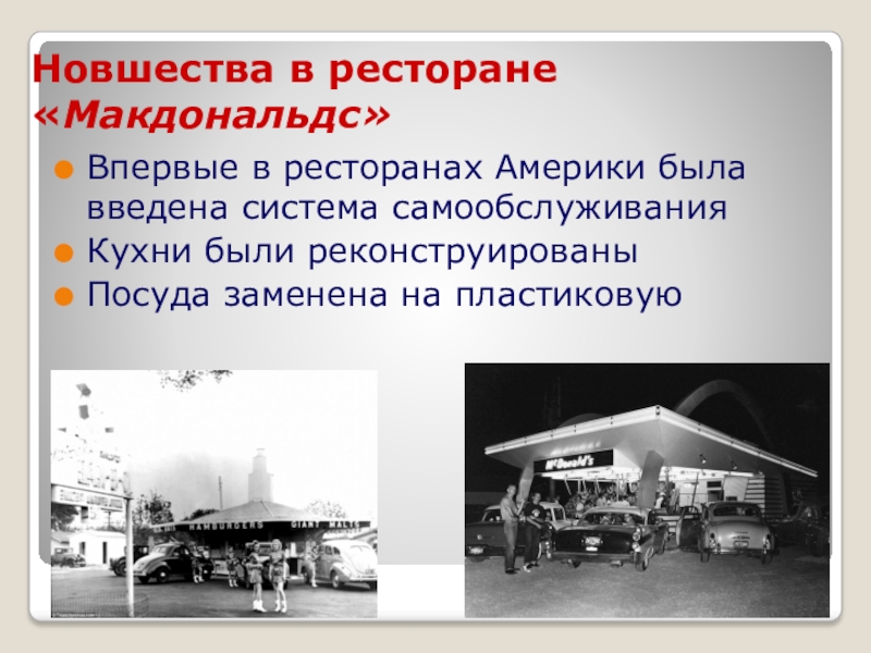 Слайд 3Новшества в ресторане «Макдональдс»