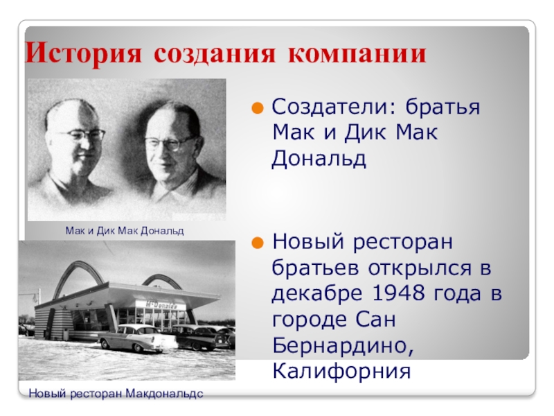 Создатели: братья Мак и Дик Мак Дональд