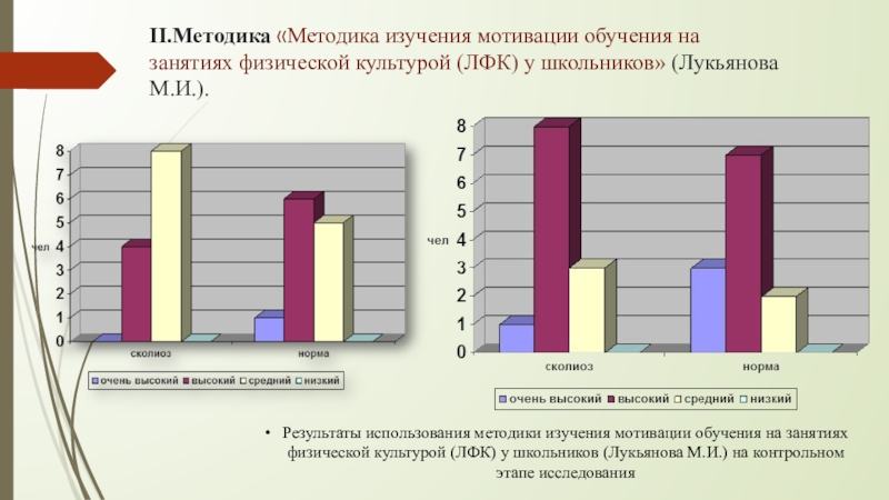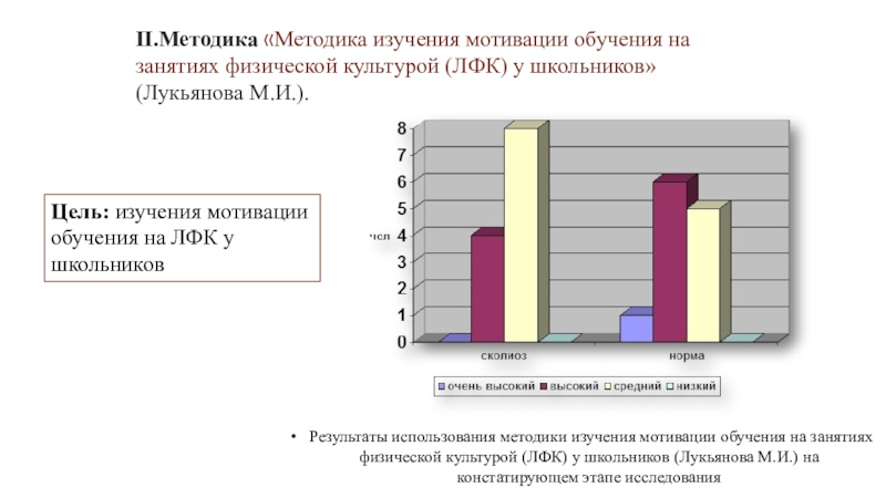 Слайд 19II.Методика «Методика изучения мотивации обучения на занятиях физической культурой (ЛФК)