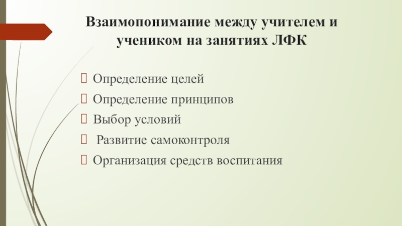 Слайд 8Взаимопонимание между учителем и учеником на занятиях ЛФК