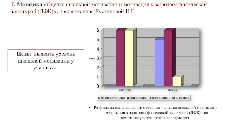 Слайд 12I. Методика «Оценка школьной мотивации и мотивация к занятиям физической