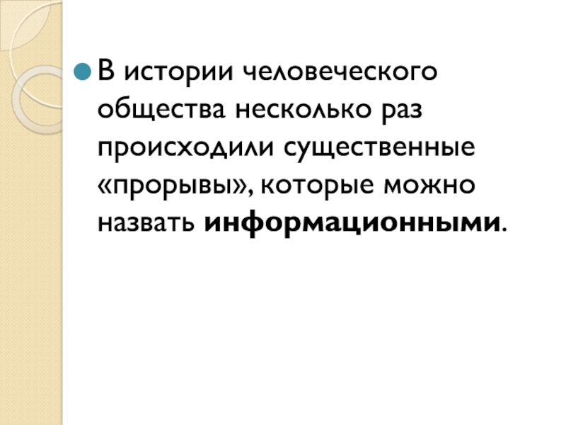 Слайд 3В истории человеческого общества несколько раз происходили существенные «прорывы», которые