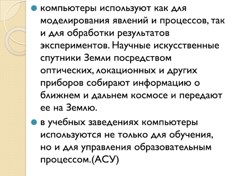 Слайд 12компьютеры используют как для моделирования явлений и процессов, так и