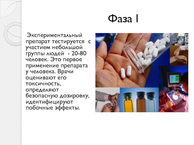 тестируется с участием небольшой группы людей - 20-80 человек. Это первое применение препарата у человека. Врачи оценивают его токсичность, определяют безопасную дозировку, идентифицируют побочные эффекты.