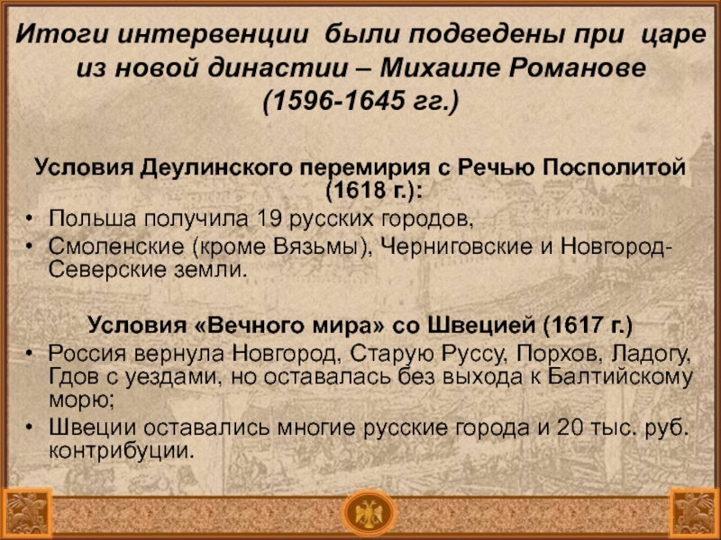 Слайд 50Итоги интервенции были подведены при царе из новой династии –