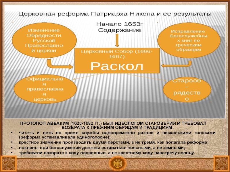 Слайд 54ПРОТОПОП АВВАКУМ (1620-1682 ГГ.) БЫЛ ИДЕОЛОГОМ СТАРОВЕРИЯ И ТРЕБОВАЛ ВОЗВРАТА