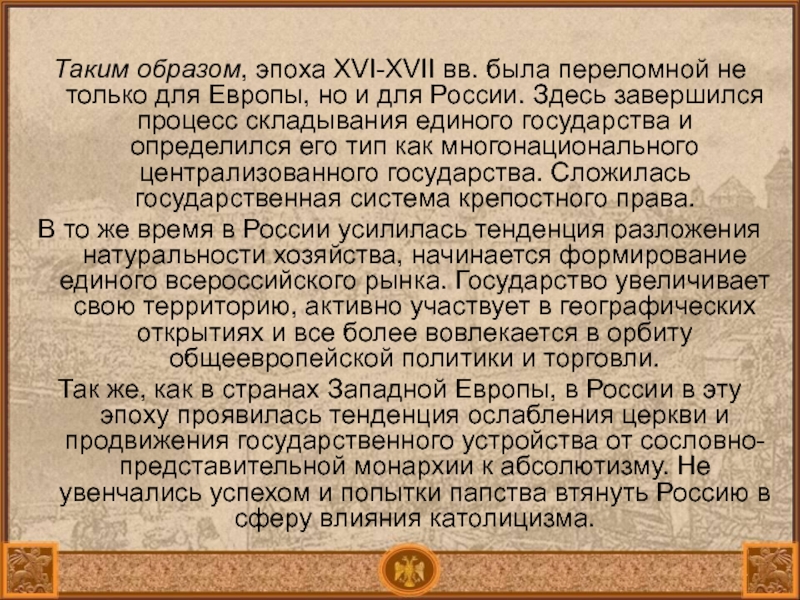 Таким образом, эпоха XVI-XVII вв. была переломной не только для