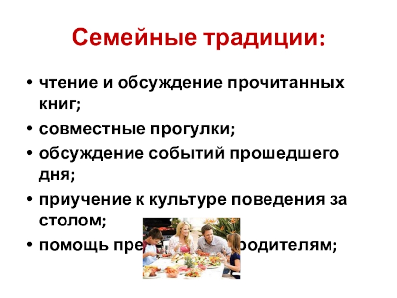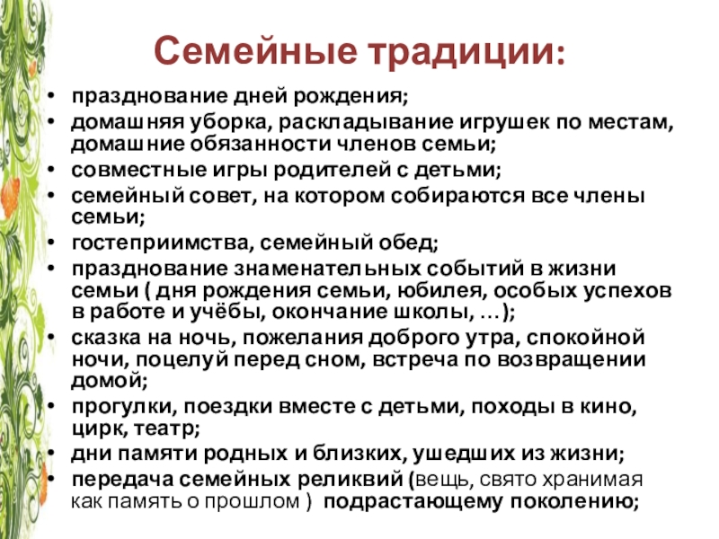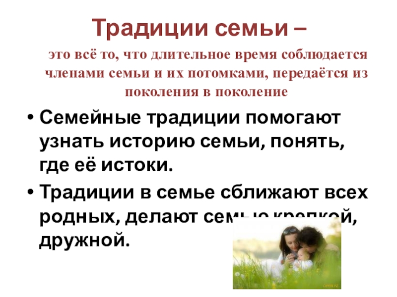что длительное время соблюдается членами семьи и их потомками, передаётся из поколения в поколение
