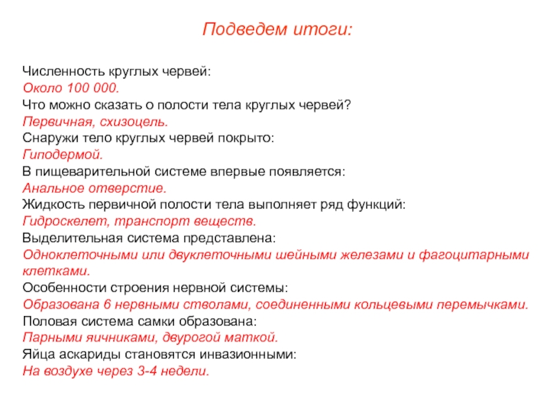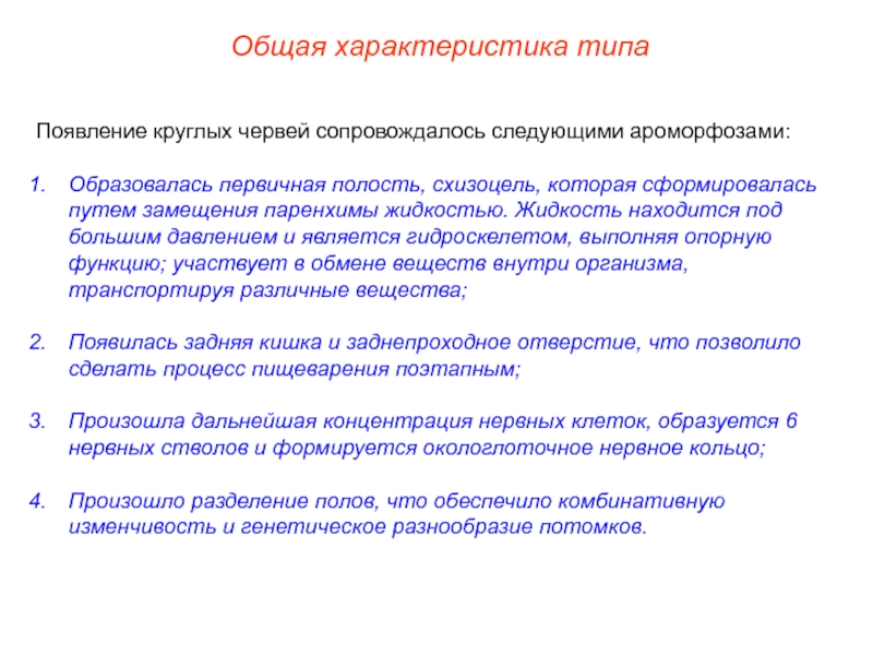 Появление круглых червей сопровождалось следующими ароморфозами: