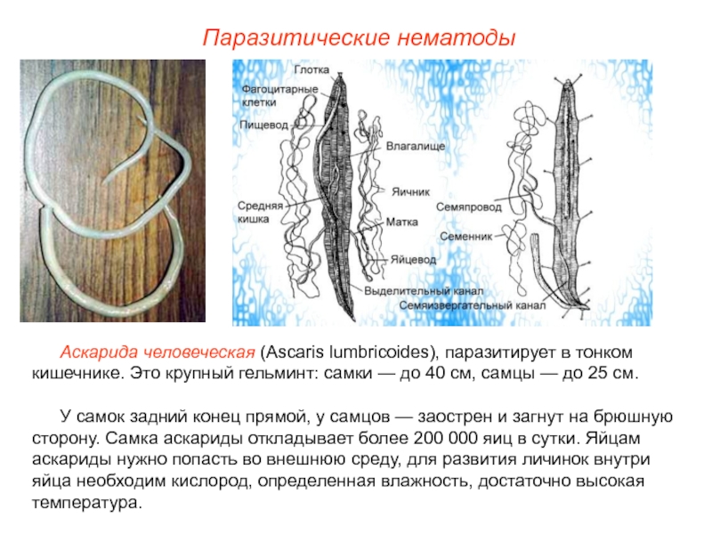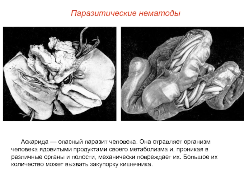 Слайд 16Аскарида — опасный паразит человека. Она отравляет организм человека ядовитыми