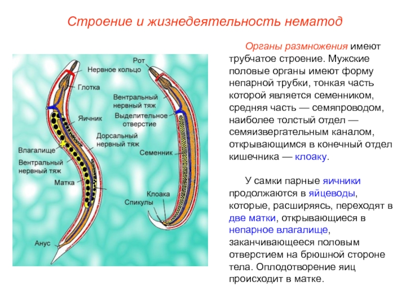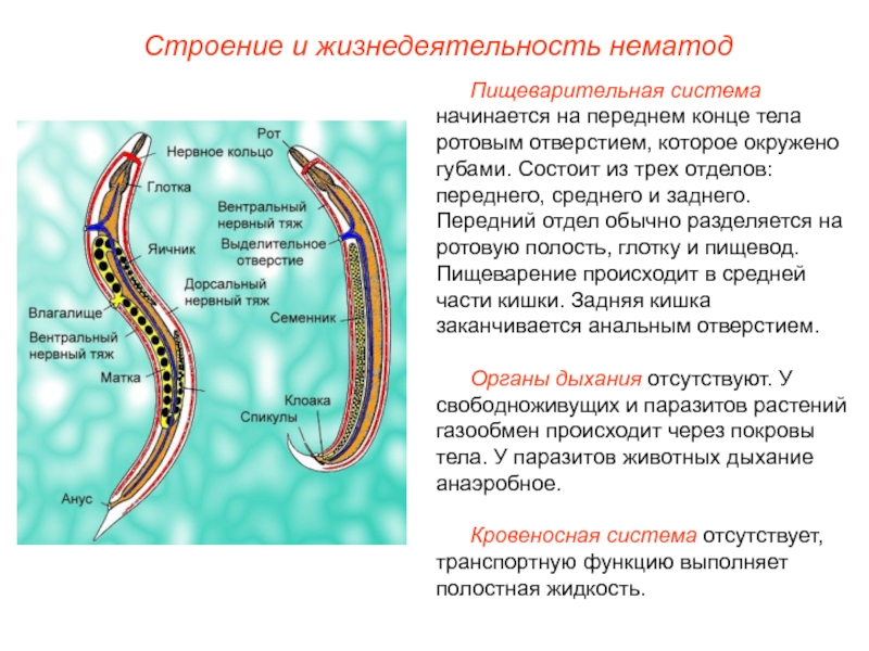 Слайд 12Строение и жизнедеятельность нематод