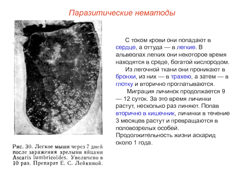 Из легочной ткани они проникают в бронхи, из них — в трахею, а затем — в глотку и вторично проглатываются.