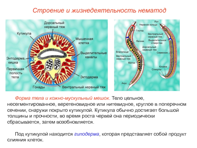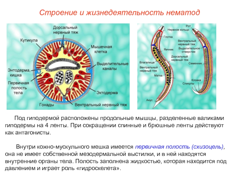 Слайд 8Строение и жизнедеятельность нематод
