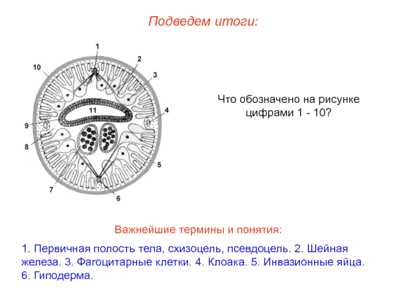 1. Первичная полость тела, схизоцель, псевдоцель. 2. Шейная железа. 3.