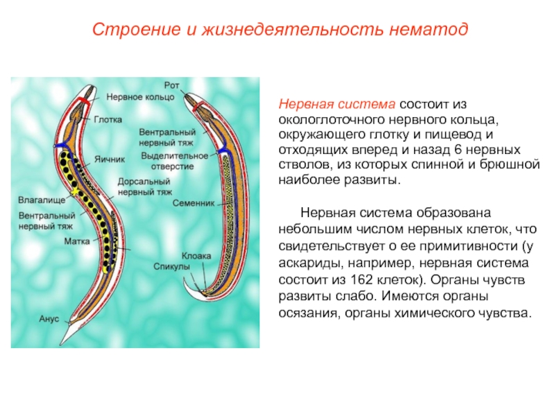 Слайд 6Строение и жизнедеятельность нематод