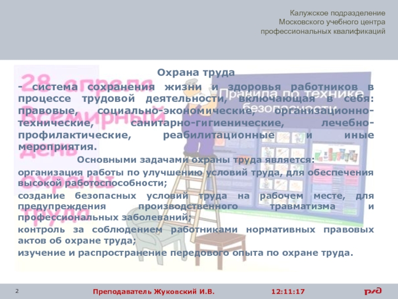 лечебно-профилактические, реабилитационные и иные мероприятия.Основными задачами охраны труда является: