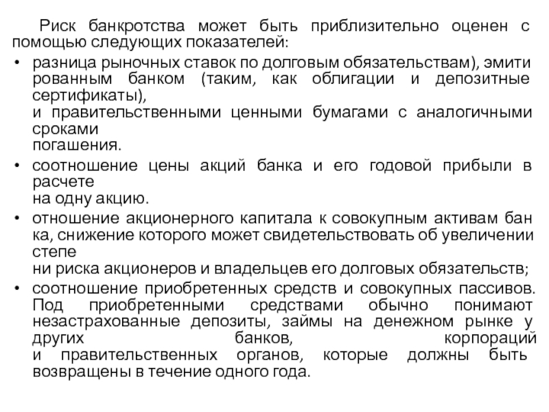Слайд 22 Риск банкротства может быть приблизительно оценен с помощью следующих показателей:
